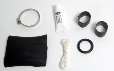 The Moose Bag comes with the following components:- 1 x Hose Clamp 1 x Tube of Lubricant for the Zip. (#Note:- Never use this lubricant to install the stocks into the Moose Bag collars) 2 x Pieces of Rubber Tubing. 1 x 'O' Ring 1 x Length of Tying-in Cords (No longer supplied as we have found that barely anyone uses this method to tie-in the chanter stock) - NO LONGER PROVIDED 1 x Piece of Rubber Sheet |