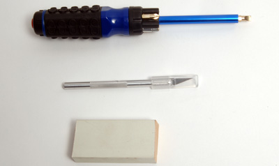 | Tools required to fit the Moose Bag (Not Supplied) 1 x Screw Driver with a Flat Head Fitting 1 x Sharp Knife 1 x Small Wood Block - (only needed for chanter stock tie-in method) #Note:- Always keep these tools on a separate work area from the bag and be very careful when using them in the fitting process.