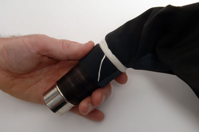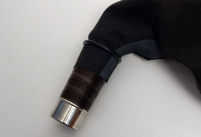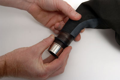 Roll the 'O' Ring up the chanter stock and over the bag until it finds and slips into the tying-in groove in the stock.