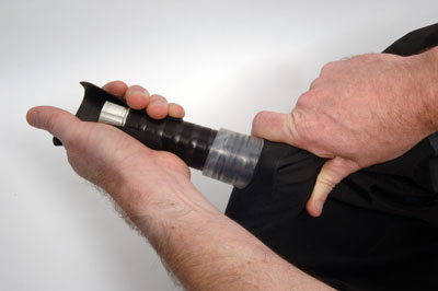 Push Stock through the Collar Firmly push the stock, ferrule first, through the rubber collar as far as possible. #Note:- If you are having difficulty getting the stocks through to collars and into position then try one of the following to soften each collar first:- 1. Soak the collar into a cup of hot water for a few minutes first OR; 2. Warm with a hair dryer. |